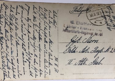 En 1918, l’adresse indique en effet bien le Régiment 276 (cf. Carte Postale). Il était “Gefreiter”, ce qui équivaut à un caporal dans l’armée française. On voit sur sa veste militaire allemande l’insigne au niveau du deuxième bouton qui confirme bien son grade.