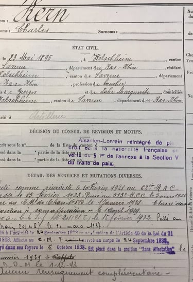 Karl (Charles) est né le 24 mai 1895 à Wolschheim, fils de Georges Kern et Marguerite Lohr.