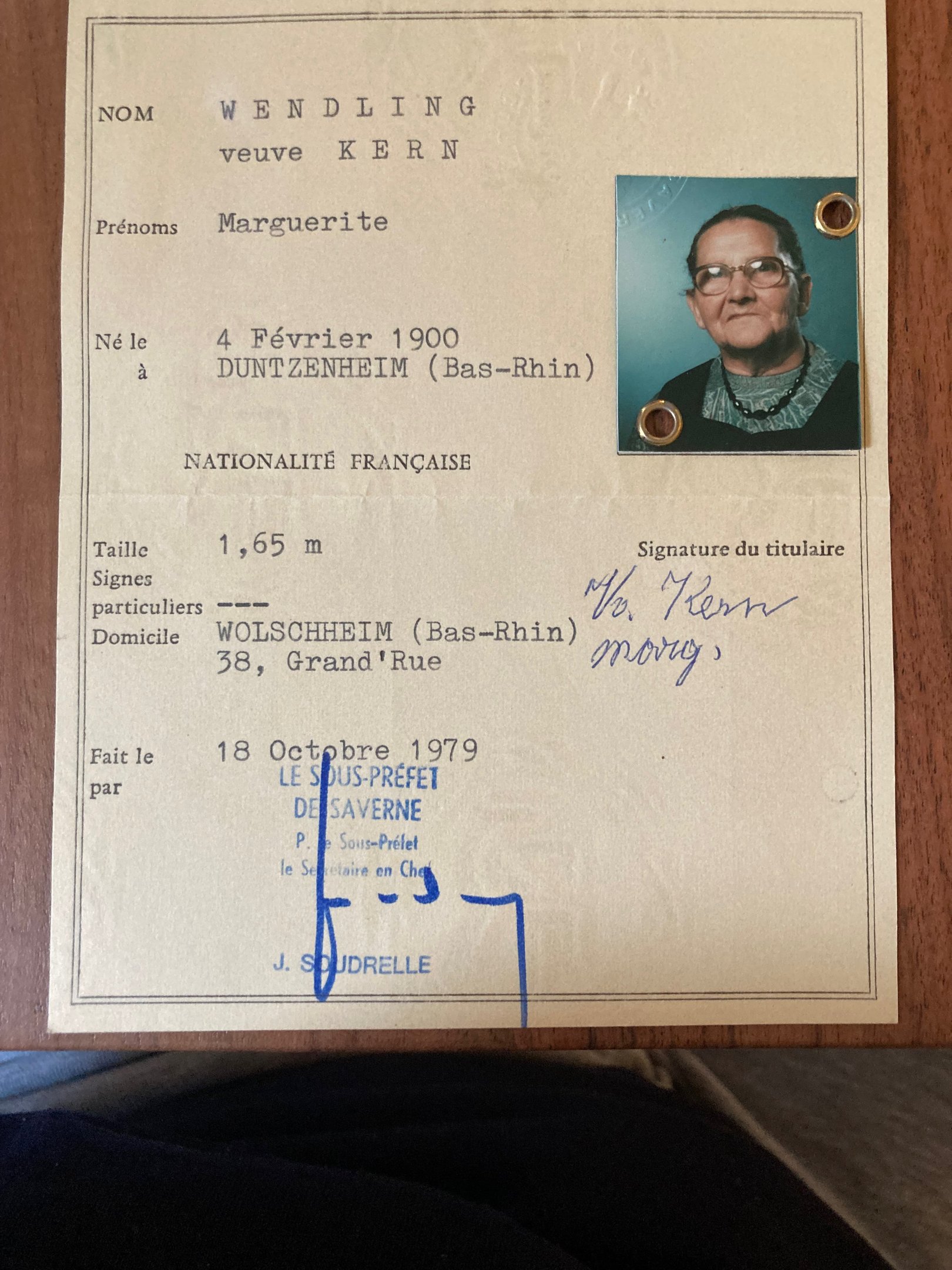 Marguerite est née le 6 février 1900 à Duntzenheim, fille de Valentin Wendling et Eve Arbogast.