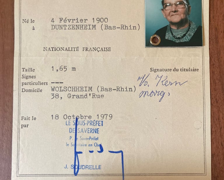 Enfance chez sa grand-mère à Obernai (pâtisserie, gants blancs)